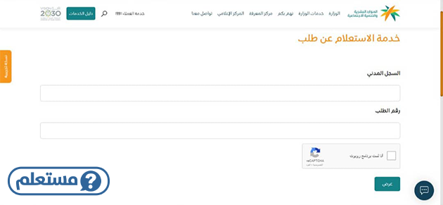- الانتقال إلى خدمة الاستعلام عن المساعدة المقطوعة “من هنا“.